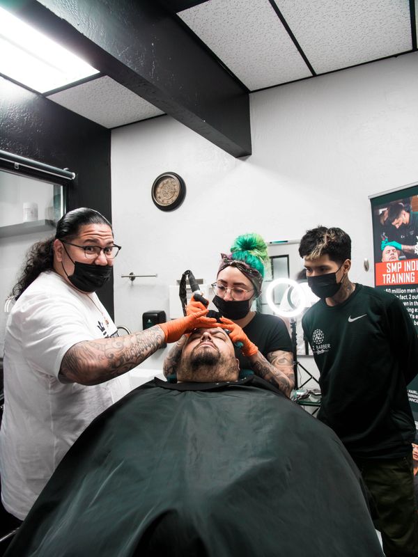 Eduardo owns 5 barber and SMP locations throughout the valley, catering to a wide range of clients, including men and women of all ages. His reputation as a skilled artist and educator has helped him to grow his business and reach new heights.
